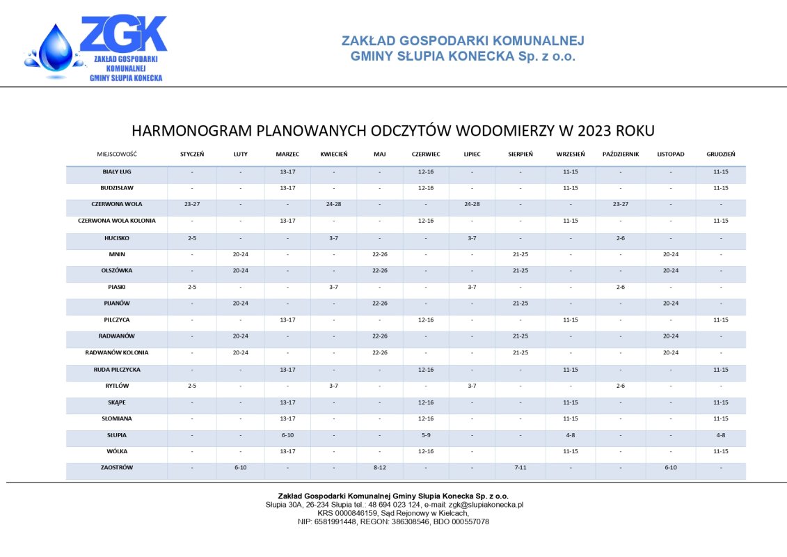 Ogłoszenie - zmiana harmonogramu odczytów wodomierzy